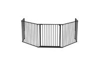 Het zwarte, metalen hek bestaat uit 5 delen: een deurtje van 72 cm, 2 panelen van 72 cm breed en 2 van 33 cm breed. Dankzij het bevestigingsmateriaal kan je de houders aan de muur vastschroeven. Zo kan je het hekje er makkelijk in- en uitklikken. Elk deel is 71 cm hoog. Zo kan je een opening overbruggen van 90 tot 278 cm breed. Ideaal om bijvoorbeeld een kachel of haard af te schermen voor je ontdekgrage kleintje. Let er wel op dat je het hek op minstens 90 cm van de warmtebron plaatst.