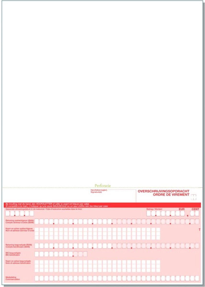 Onderaan is een geperforeerde strook om het overschrijvingsformulier netjes te verwijderen.